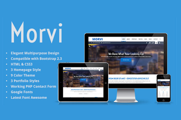 Morvi is a bootstrap corporate theme, which have 3 different homepage style ready to use, and also 3 portfolio style for you to choose.