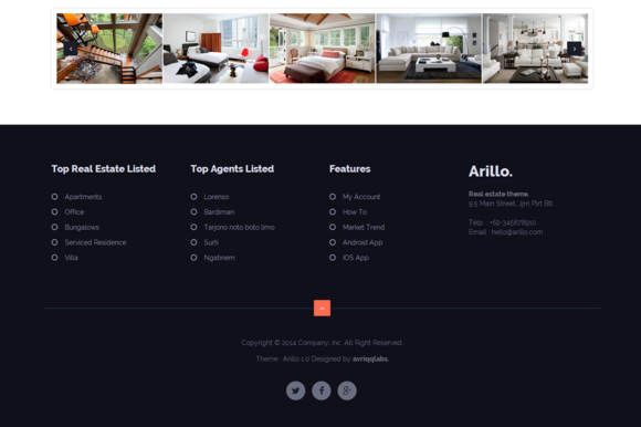 Arillo is responsive HTML template built on Twitter Bootstrap 3.2.0 framework. Arillo is real estate or property based website template. Arillo enable real estate agents or relators to build their own brand and show all the features of the real estate what they sell easily. Arillo include 10 pages, they are home page / index, category grid view, category list view, search result grid view, search result grid view, about, blog, blog single, contact, and single property.