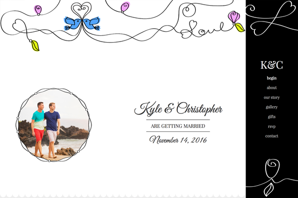 A beautiful, responsive wedding theme/template with same sex marriage support, five color options, left, right, or top navigation, gallery, PHP/ajax contact form, and other sleek features. Comes with PSD files including the smart object vector files and easy instructions for people familiar with html.