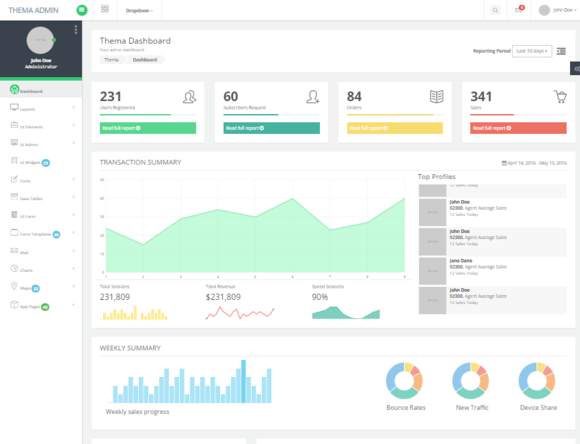 Thema Admin is a simple and easy admin template develop in order to help frontend/backend developers making their job easy and save time in their development. This are compose of 140+ pages in different layouts and examples. It has 23 sample widgets, competitive form plugins and elements, 20 unique useful form templates in every categories, custom bootstrap elements, integrated UI admin, 21 sample features for Google map in single page with vector map, 6 types of charts, 46 unique pages that can be used in your applications and many more.